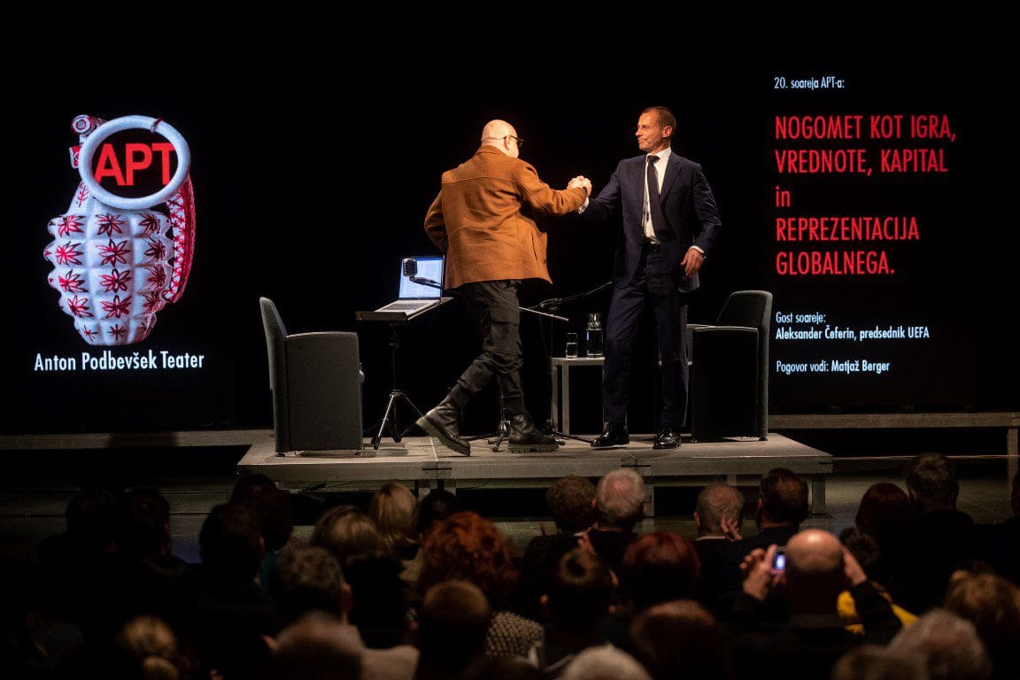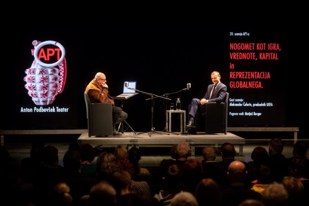 V Anton Podbevšek Teatru so pred polno dvorano gostov minuli petek izvedli 20. soarejo, z naslovom Nogomet kot igra, vrednote, kapital in reprezentacija globalnega, z gostom Aleksandrom Čeferinom, predsednikom UEFA. Pogovor je vodil ravnatelj APTa, Matjaž Berger.