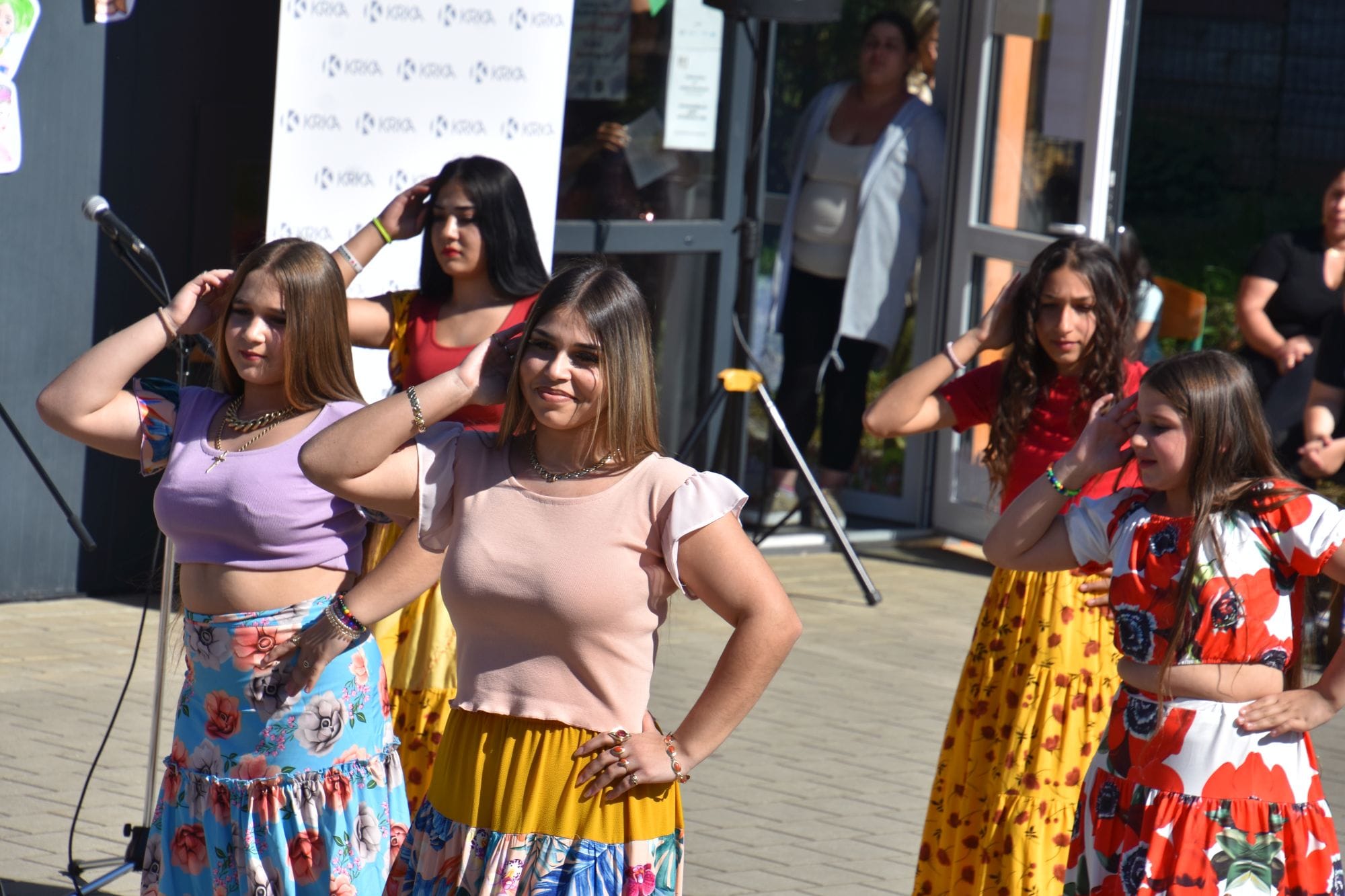 V bogatem programu so se vrstile pesmi, recitacije in ples. Zaplesala so dekleta, ki obiskujejo DRPD-jev program na Jedinščici, poleg toplega aprilskega sonca so srca obiskovalcev ogreli še najmlajši iz Pikapolonice, enote Vrtca Pedenjped, sledilo je več pesmi in recitacij romskih učencev OŠ Bršljin, dva sta predstavila še Legendo o romskem kralju in čudežnem ogledalu iz knjige Beli Rom Sandija Horvata, zaplesala so tudi dekleta, ki obiskujejo CŠOD in DRPD-jev Dnevni center za romske mladostnike v Brezju …